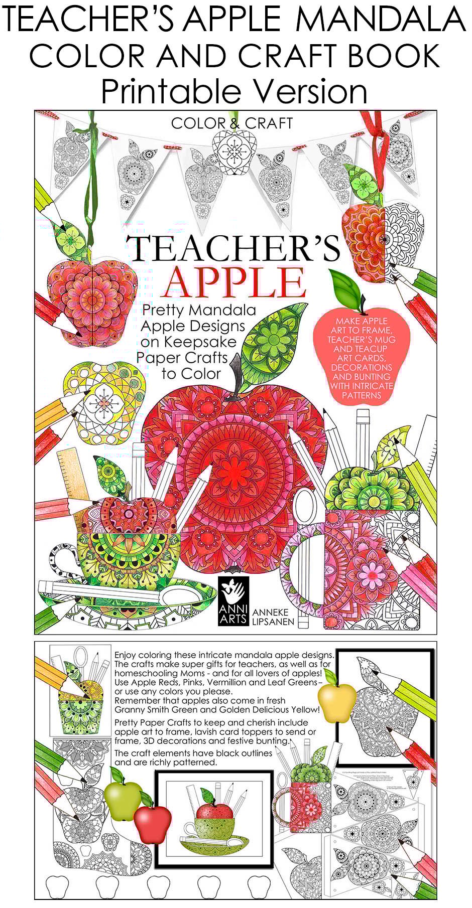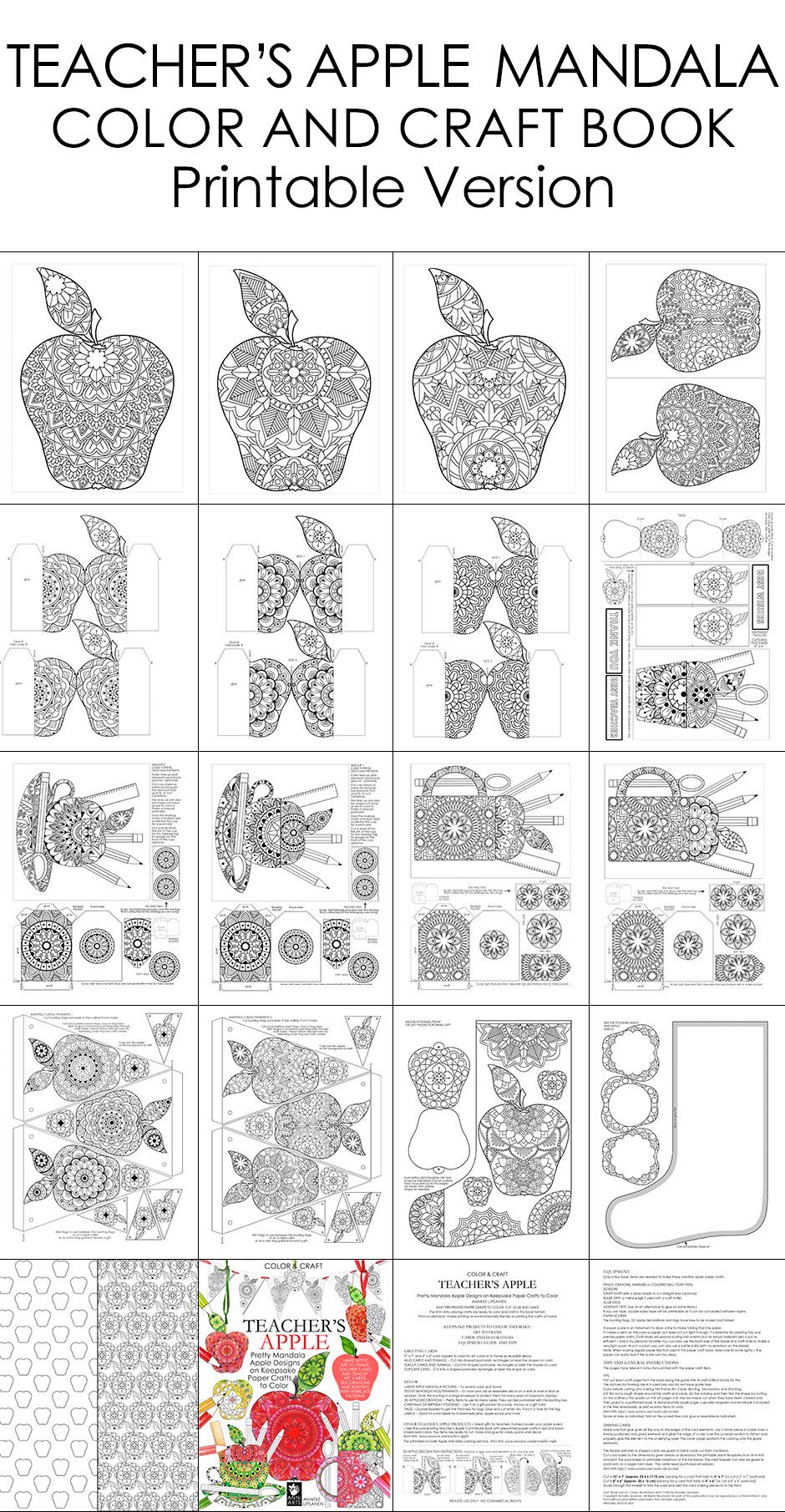 TEACHER'S APPLE MANDALA COLOR AND CRAFT BOOK - Printable Edition
